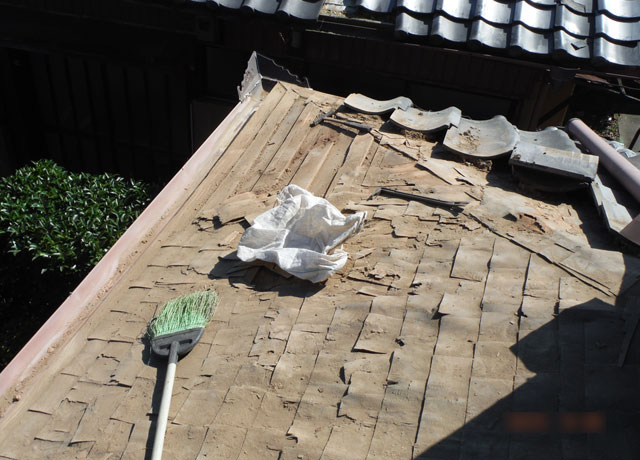 • 築60年、三州産、いぶし瓦による、屋根軽量化工事