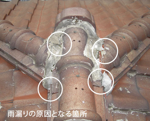 原因は、棟瓦にあると即座に断定し部分的な棟の積替えを行いました。